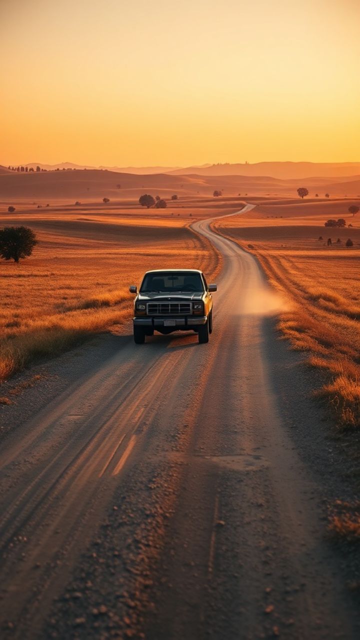 gravel road with the dashboard glowing blue. And you're praying maybe she'll sneak