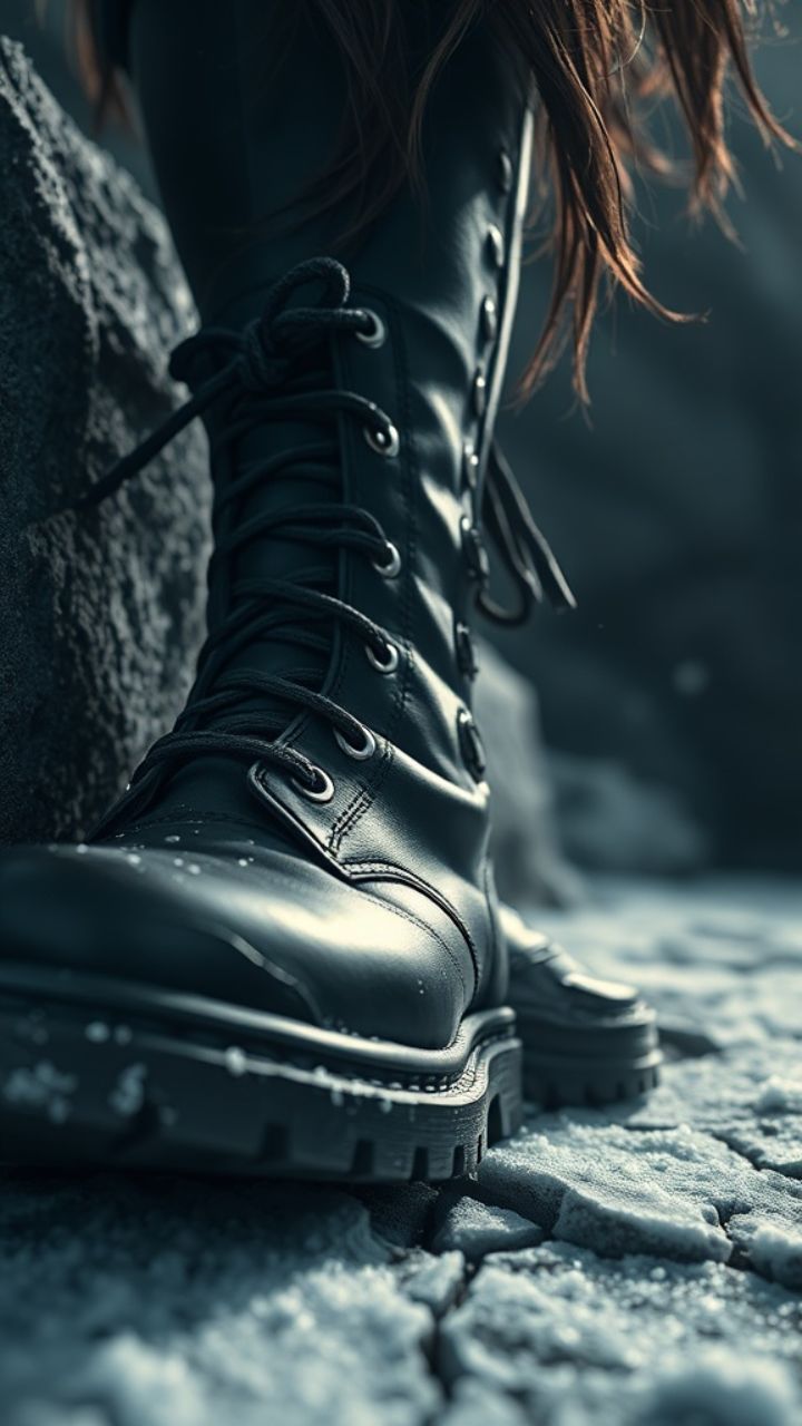 Boot prints cracking on the frosted stone. Breath like smoke in the dark