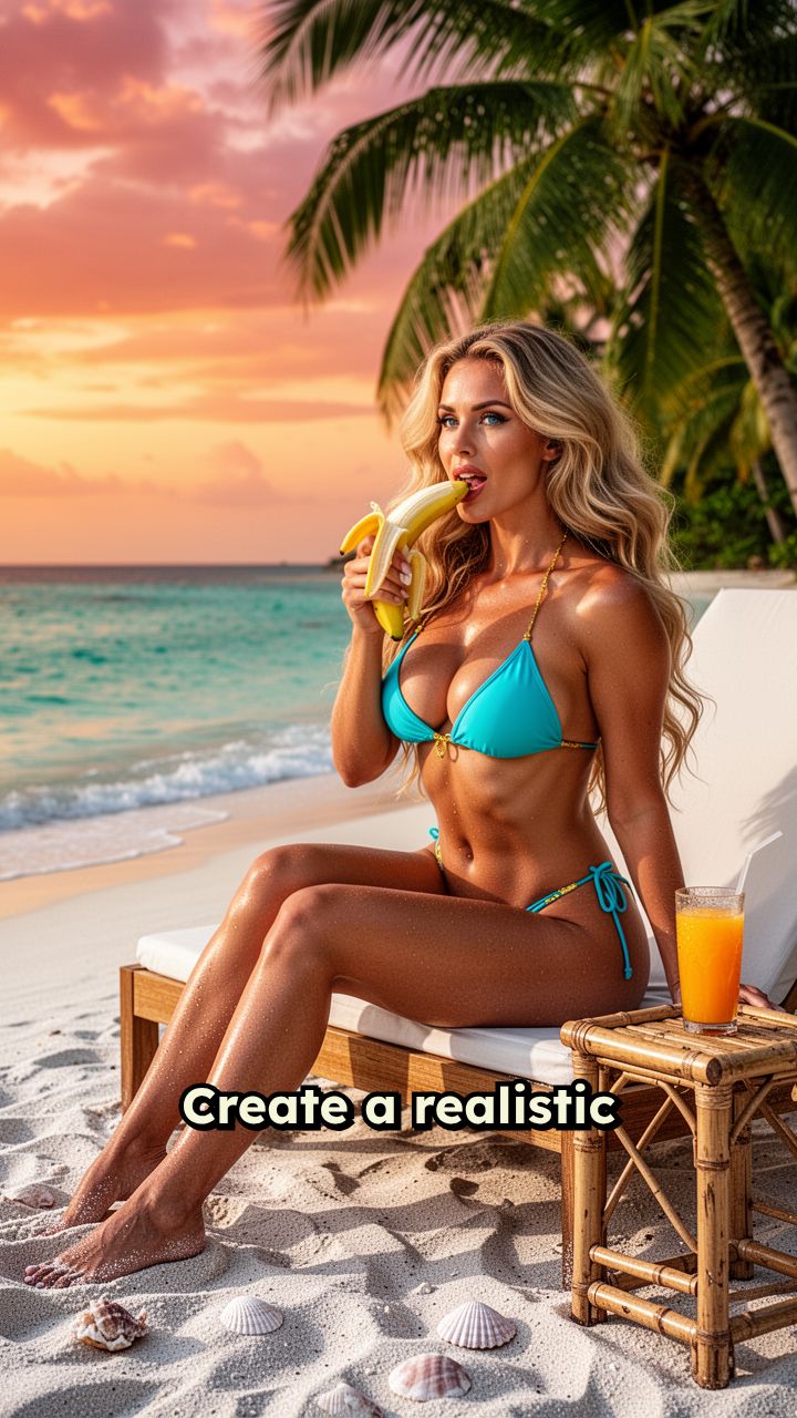 Woman in Bikini Eating Banana